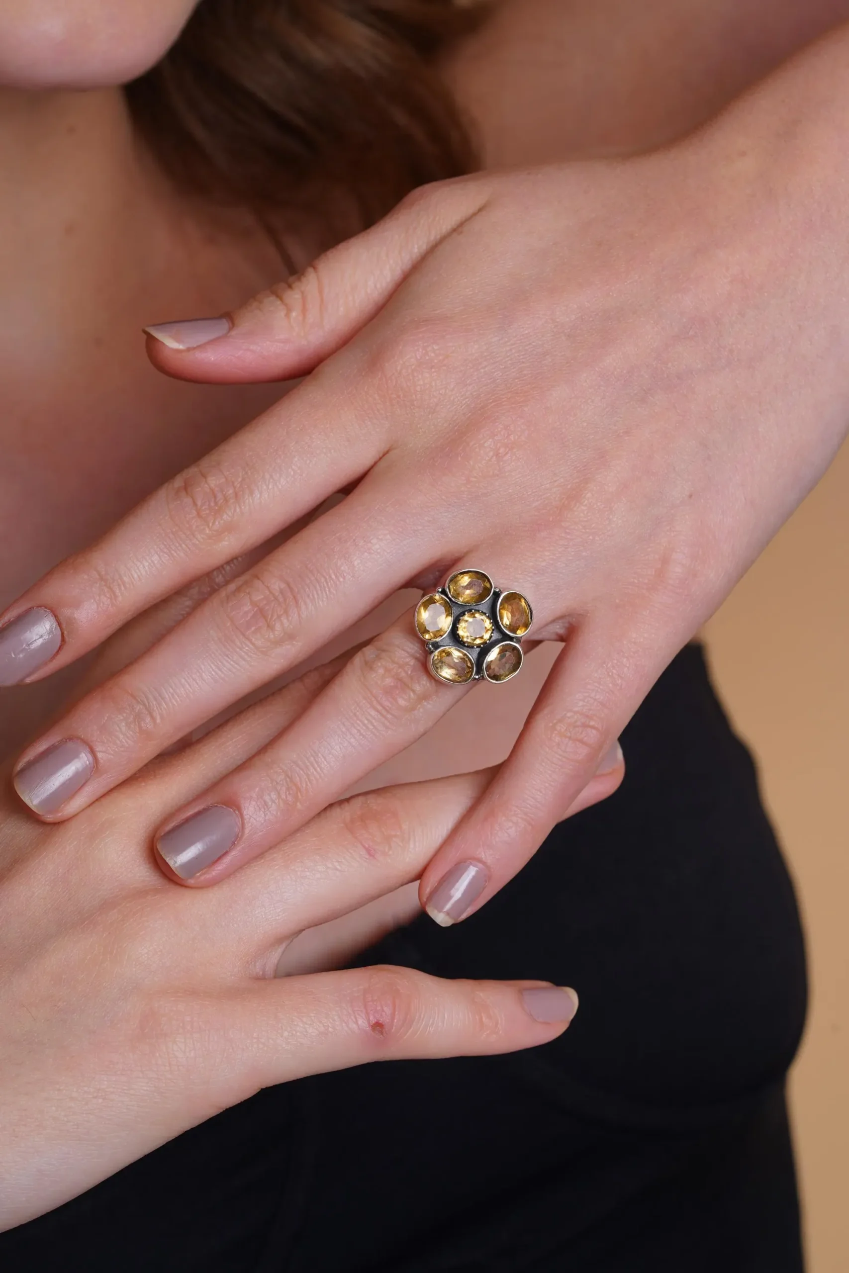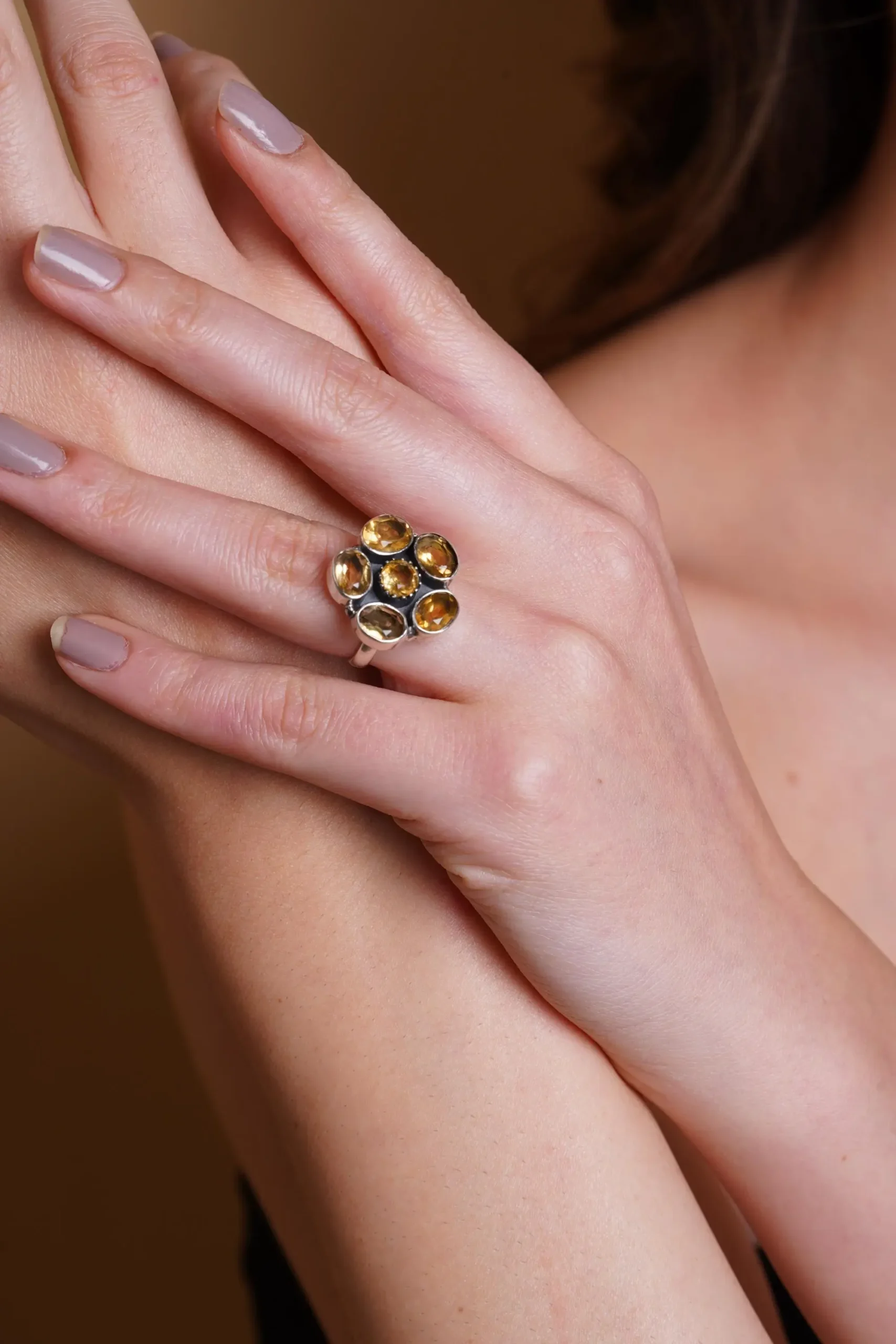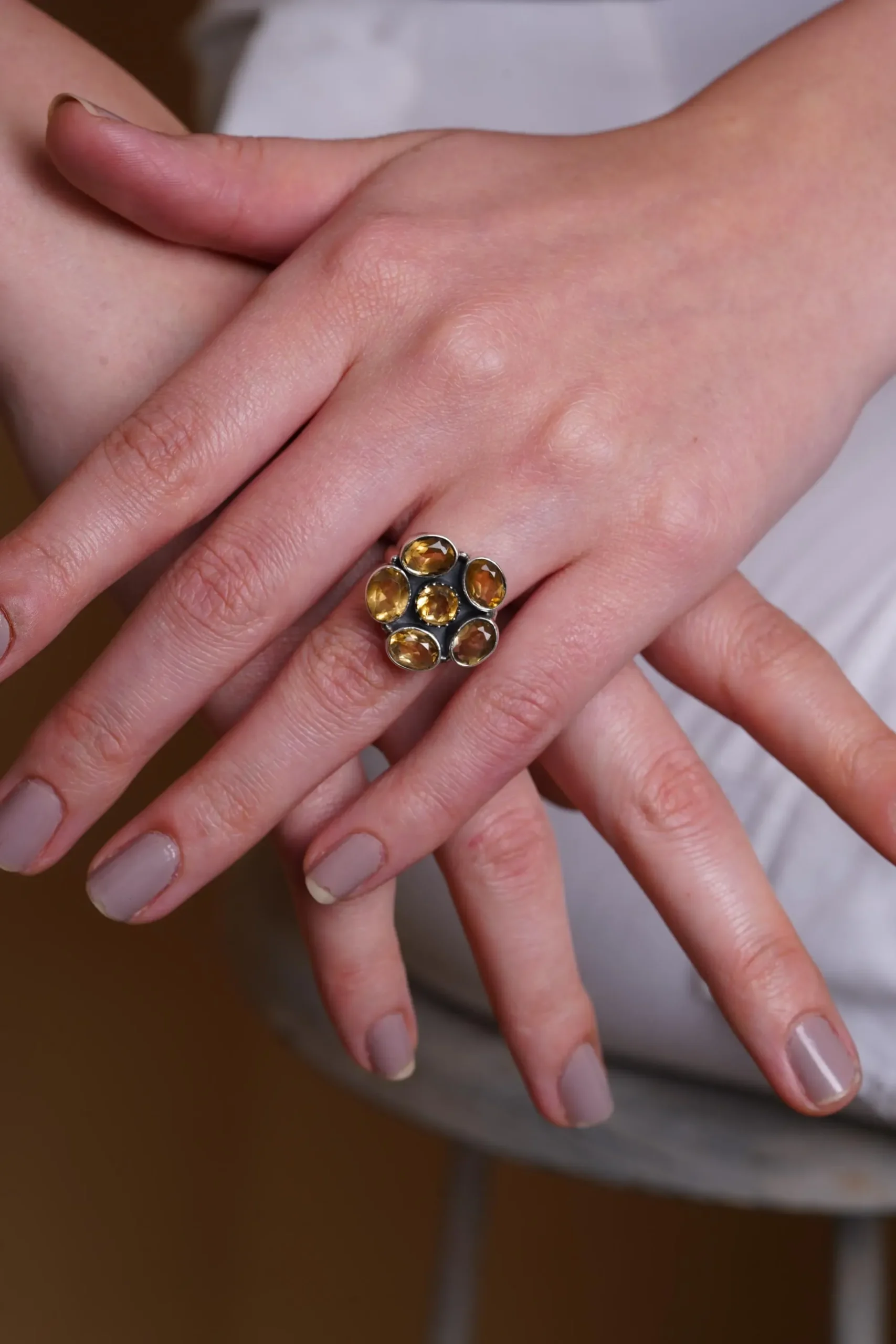Citrine Flower Cluster Ring – Natural Yellow Citrine Gemstone Statement Ring – Handmade 925 Sterling Silver Jewelry