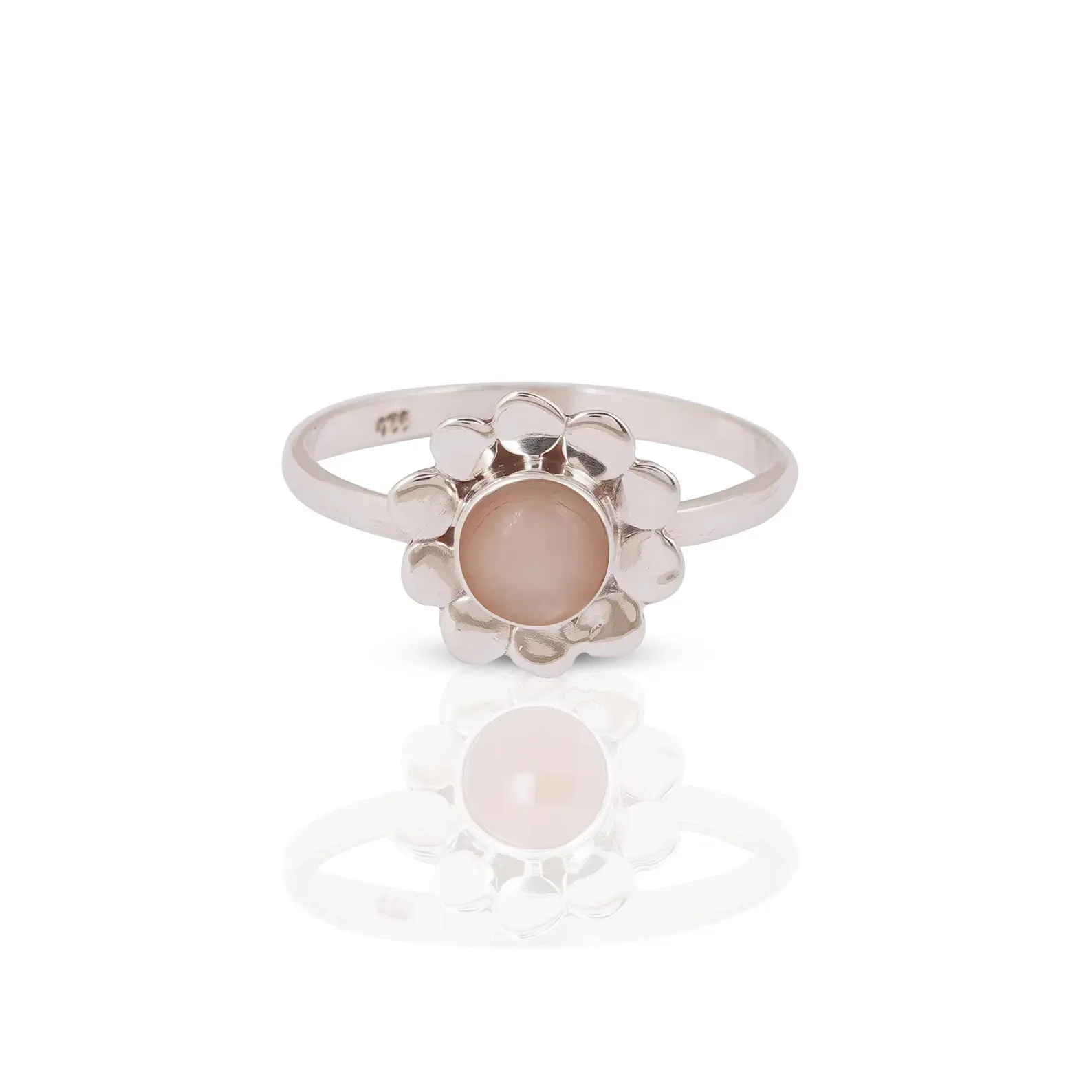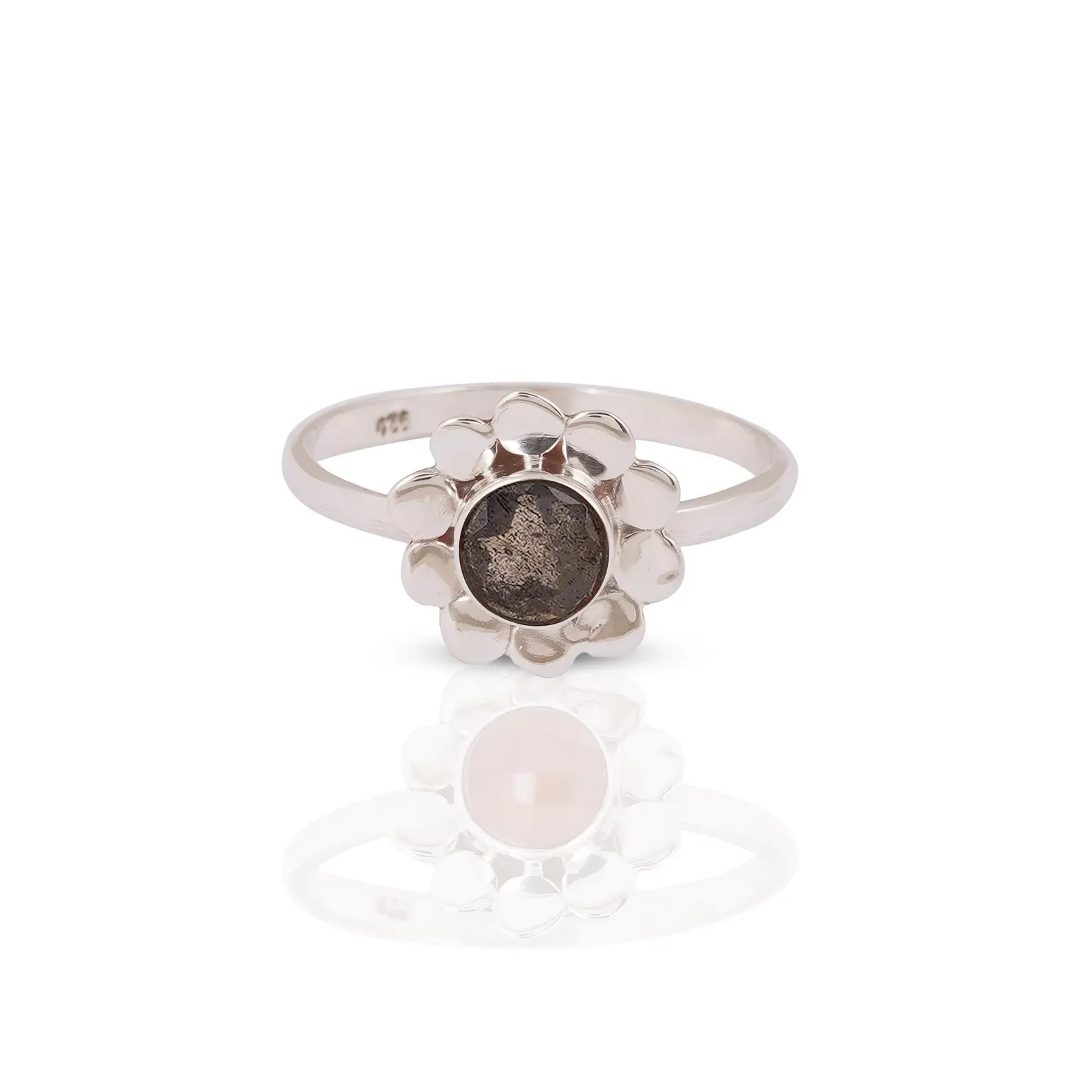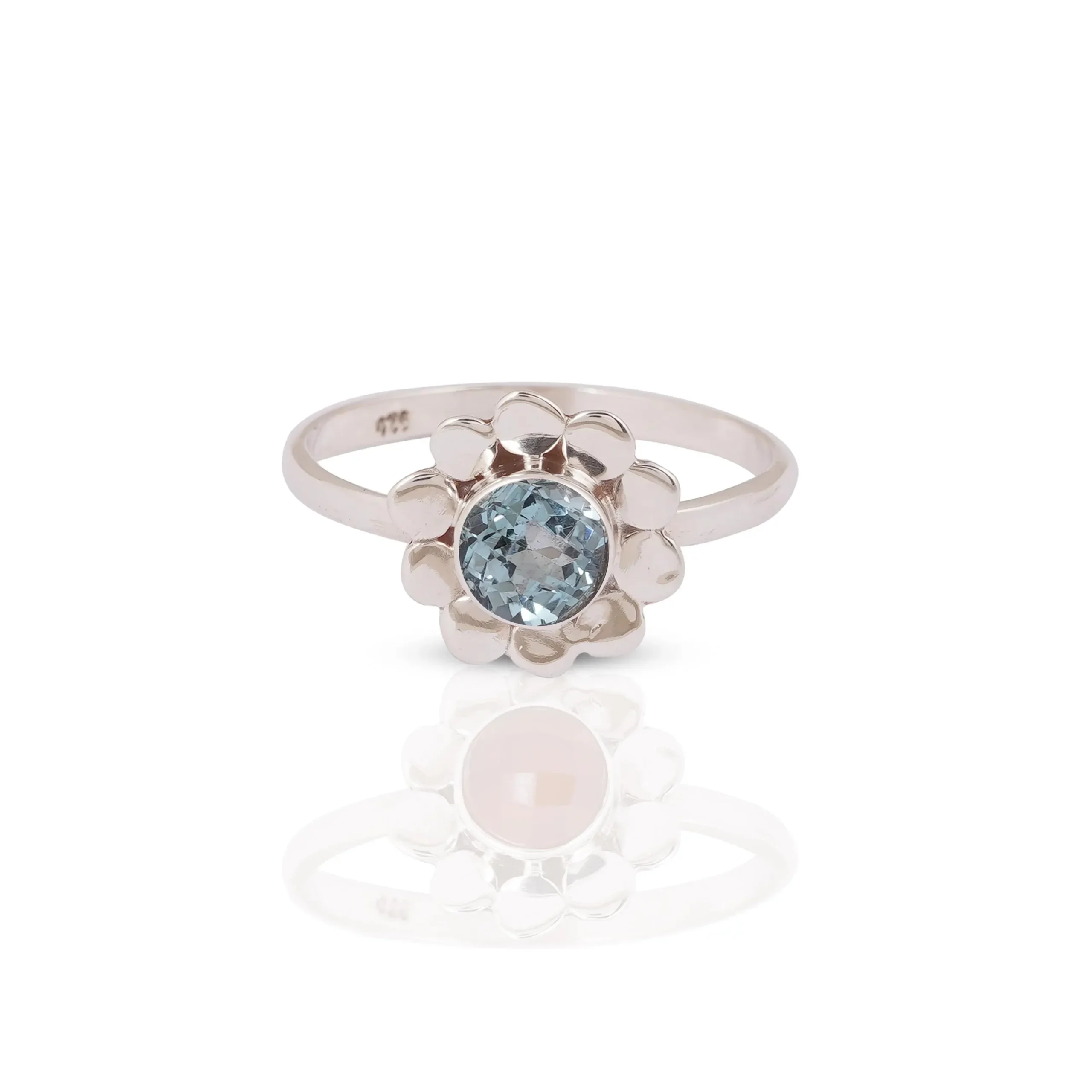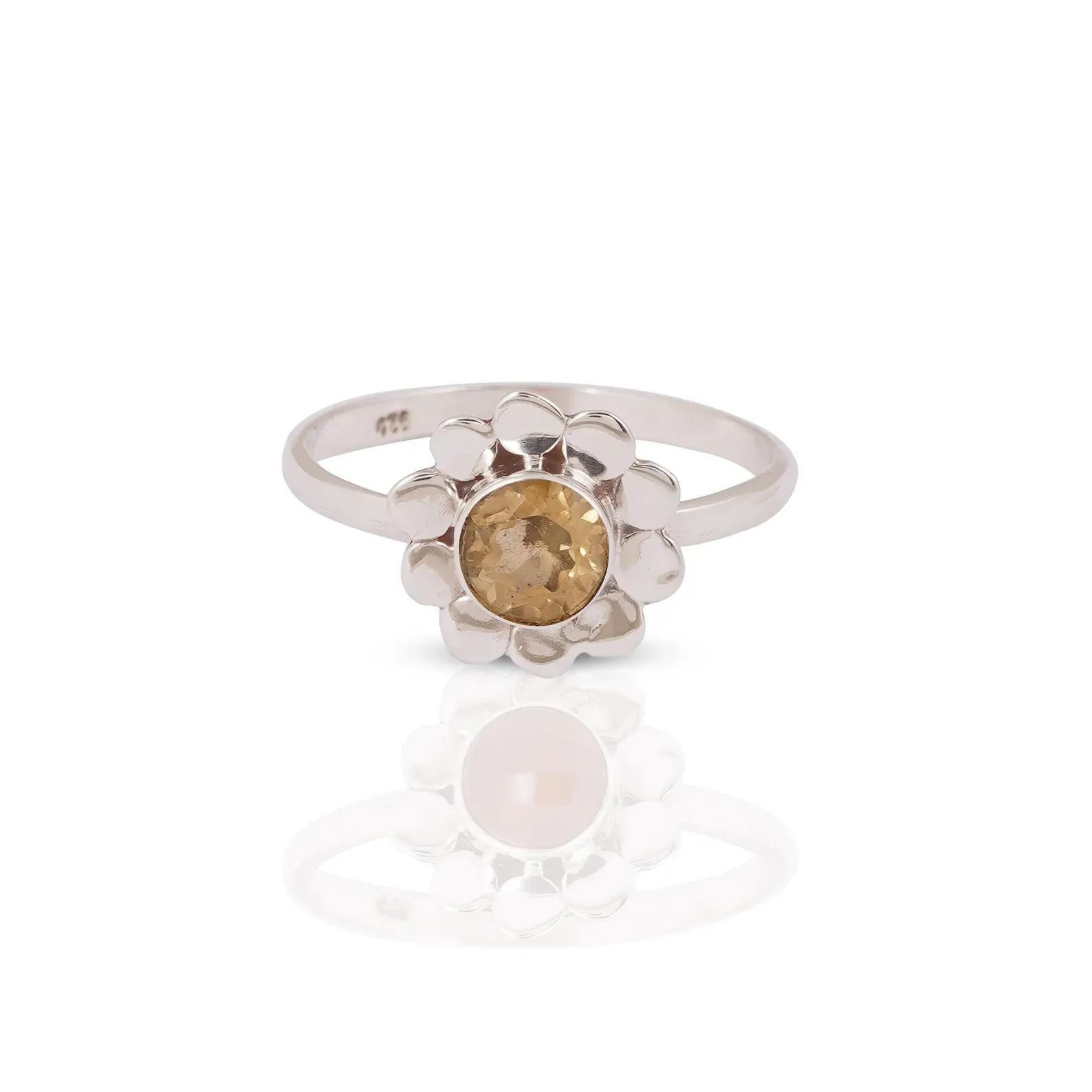 Every ring is handmade by skilled artisans, ensuring that no two pieces are exactly alike. The band and floral detailing are carefully shaped in solid .925 sterling silver, polished to a high shine, and finished with a secure bezel setting that protects the gemstone while enhancing its natural beauty. This attention to detail guarantees a piece that is not only stylish but also durable enough for everyday wear.