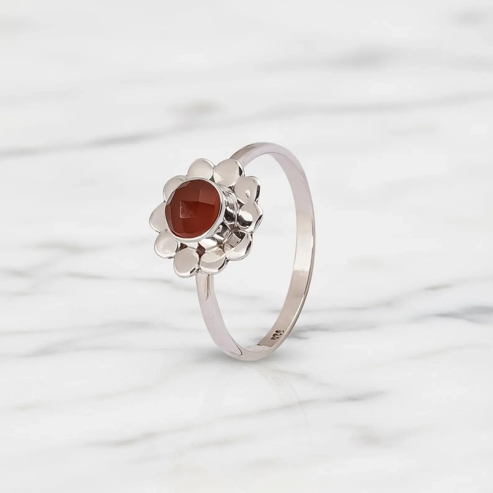 πΈ Carnelian Floral Ring in Sterling Silver β Handcrafted Boho Statement Jewelry