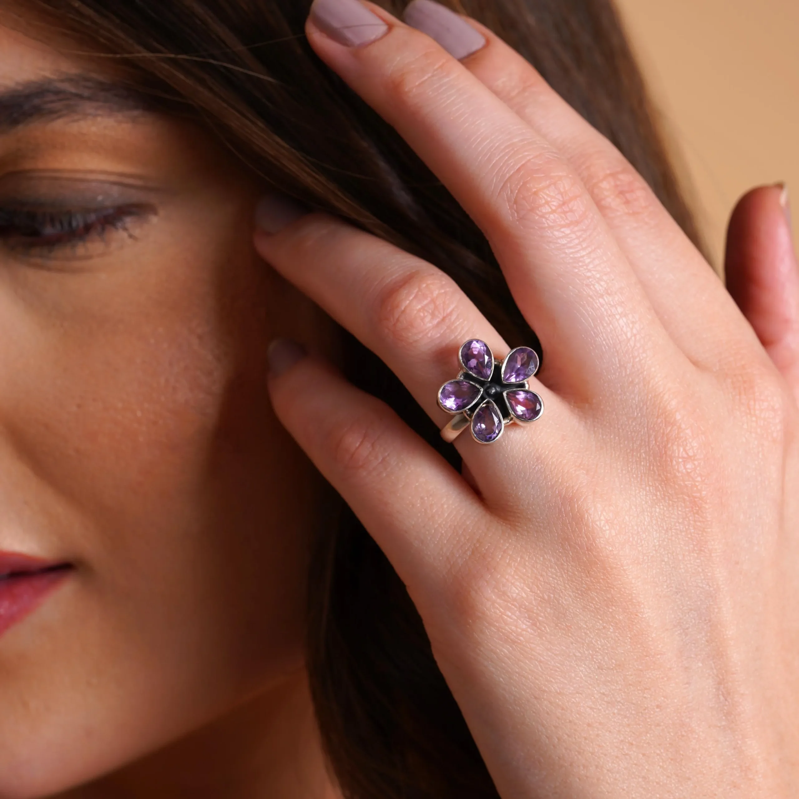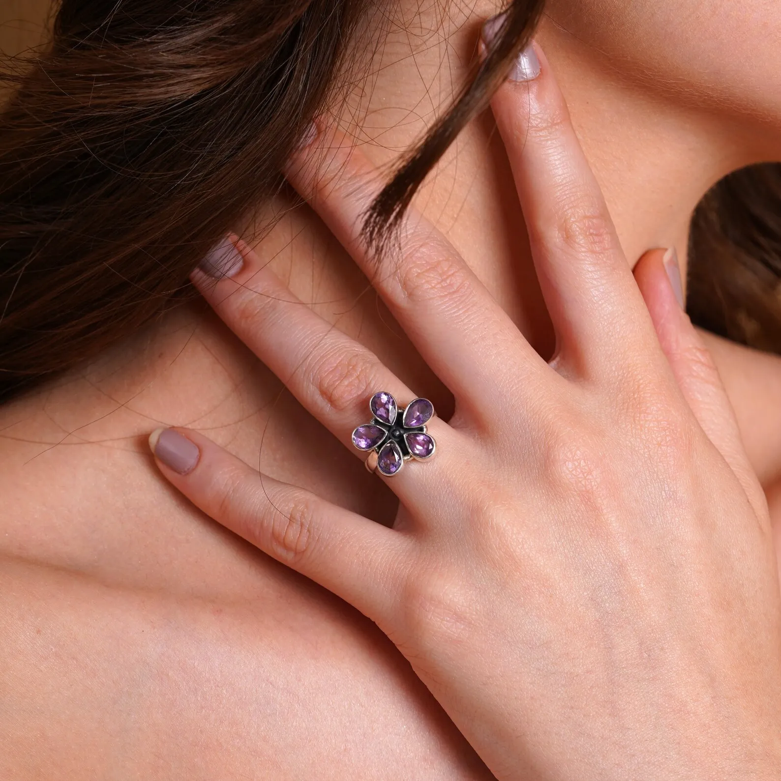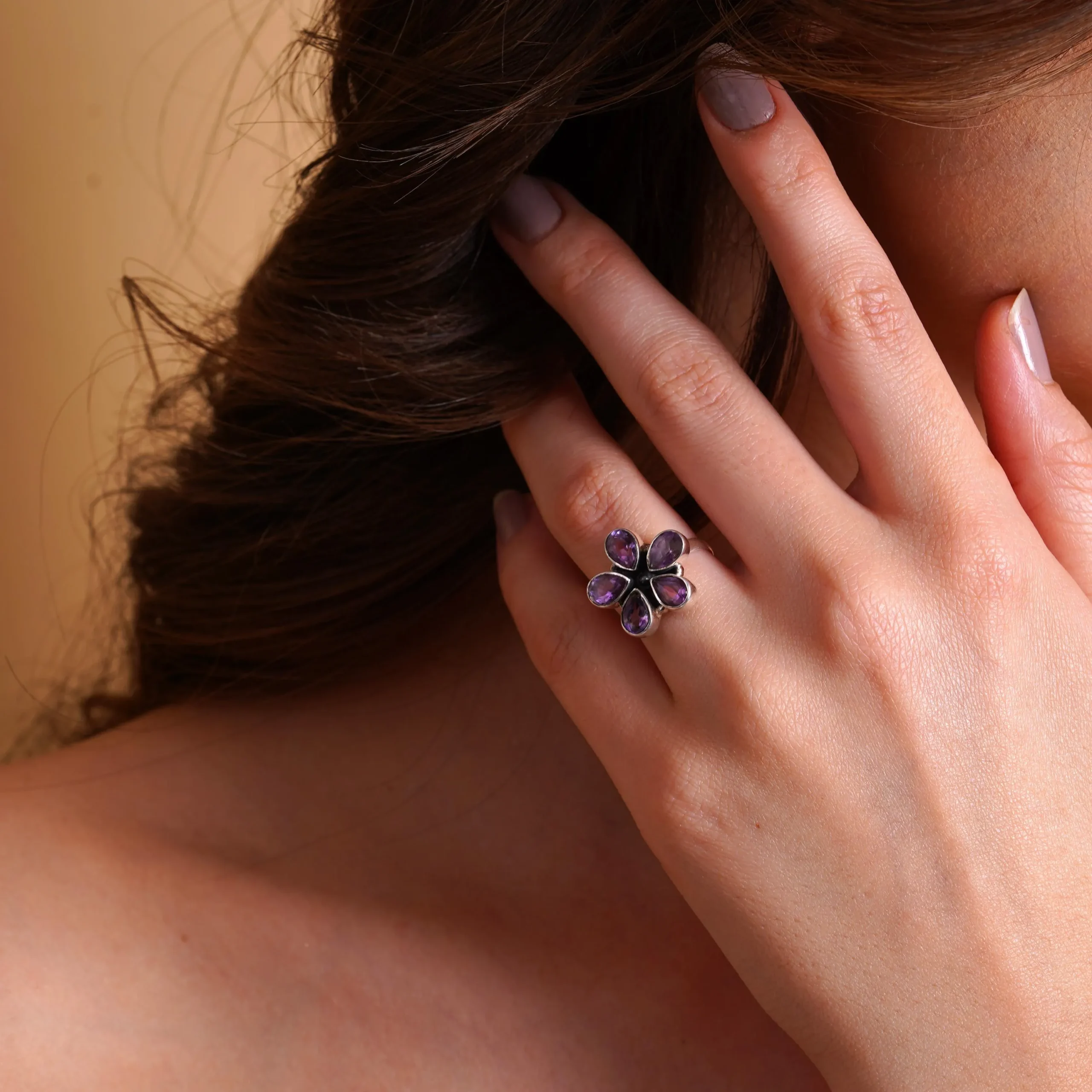 Elegant Amethyst Flower Ring – Handmade Gemstone Jewelry