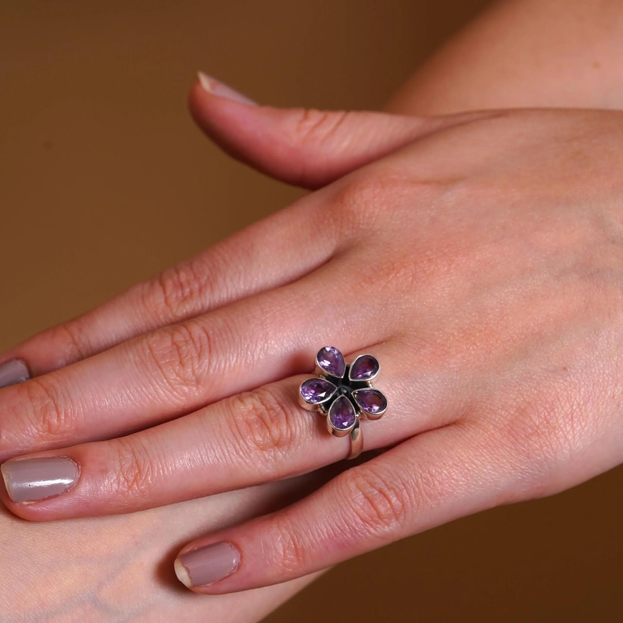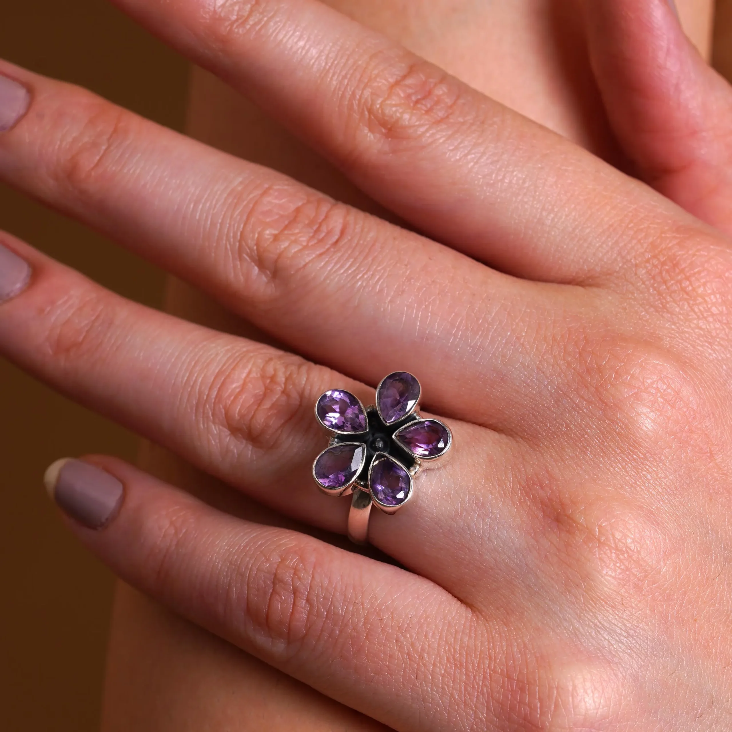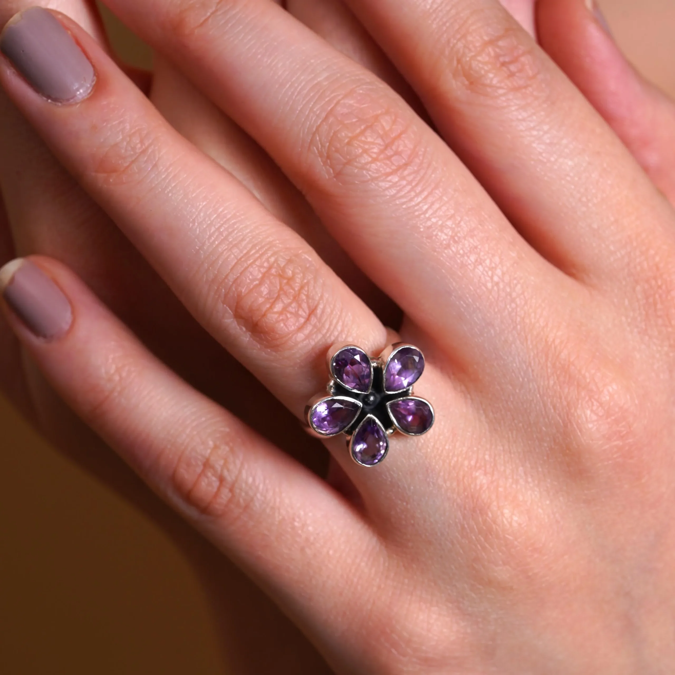 Elegant Amethyst Flower Ring – Handmade Gemstone Jewelry