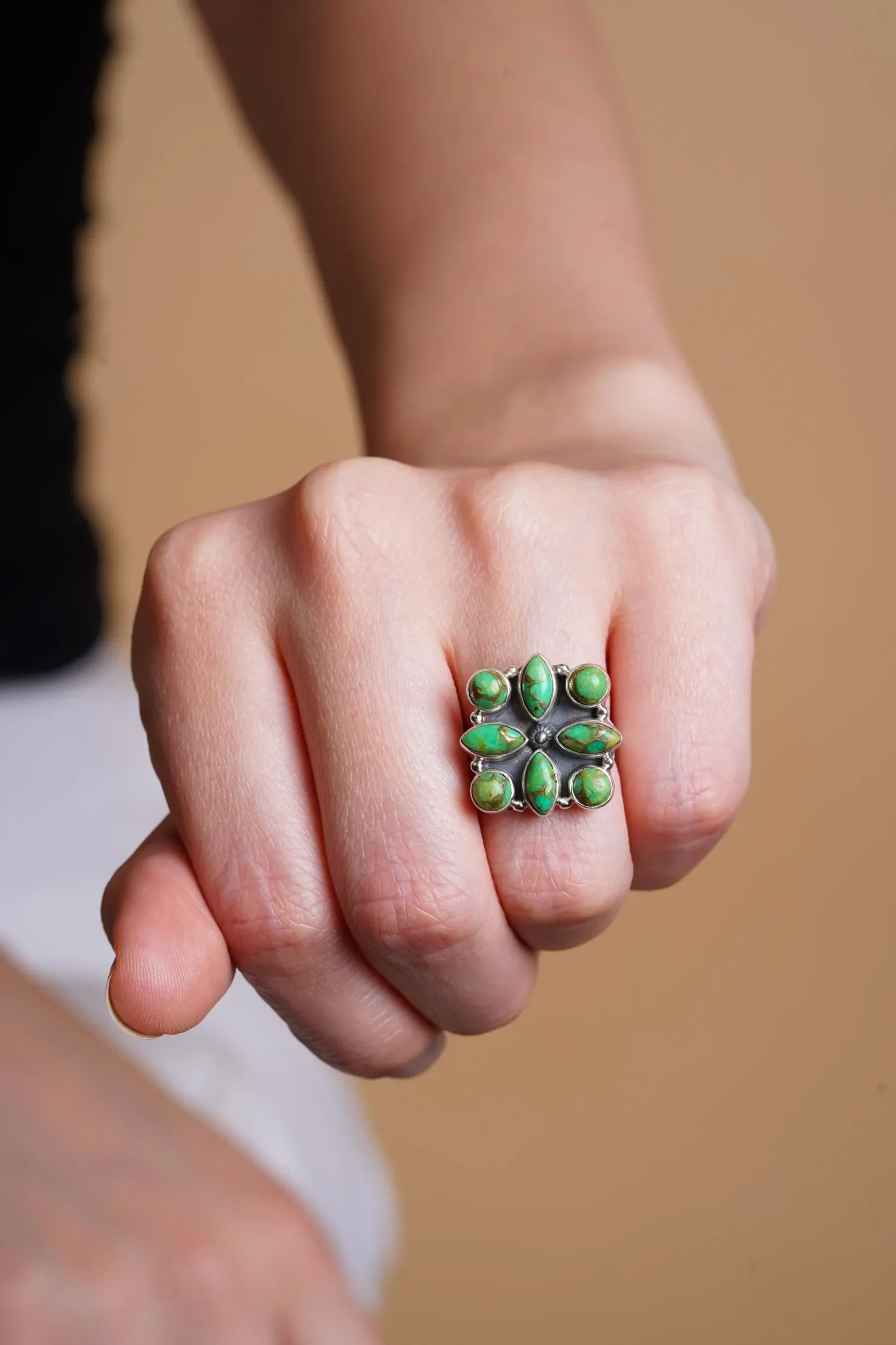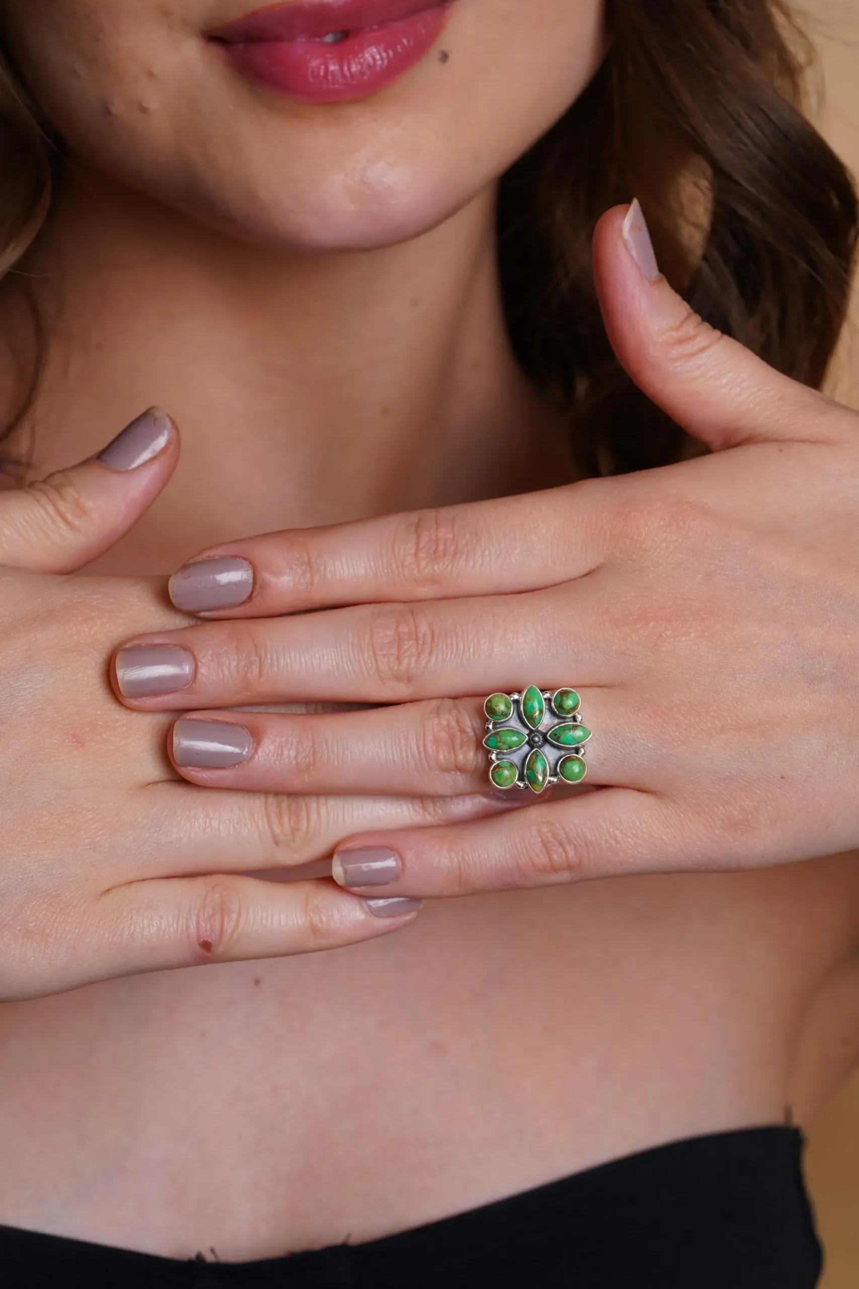 This artisan green gemstone sterling silver floral ring is more than jewelry—it is a wearable piece of art that reflects craftsmanship, individuality, and a deep connection to natural beauty. Designed to be admired and cherished, it is a timeless addition to any bohemian or statement jewelry collection.