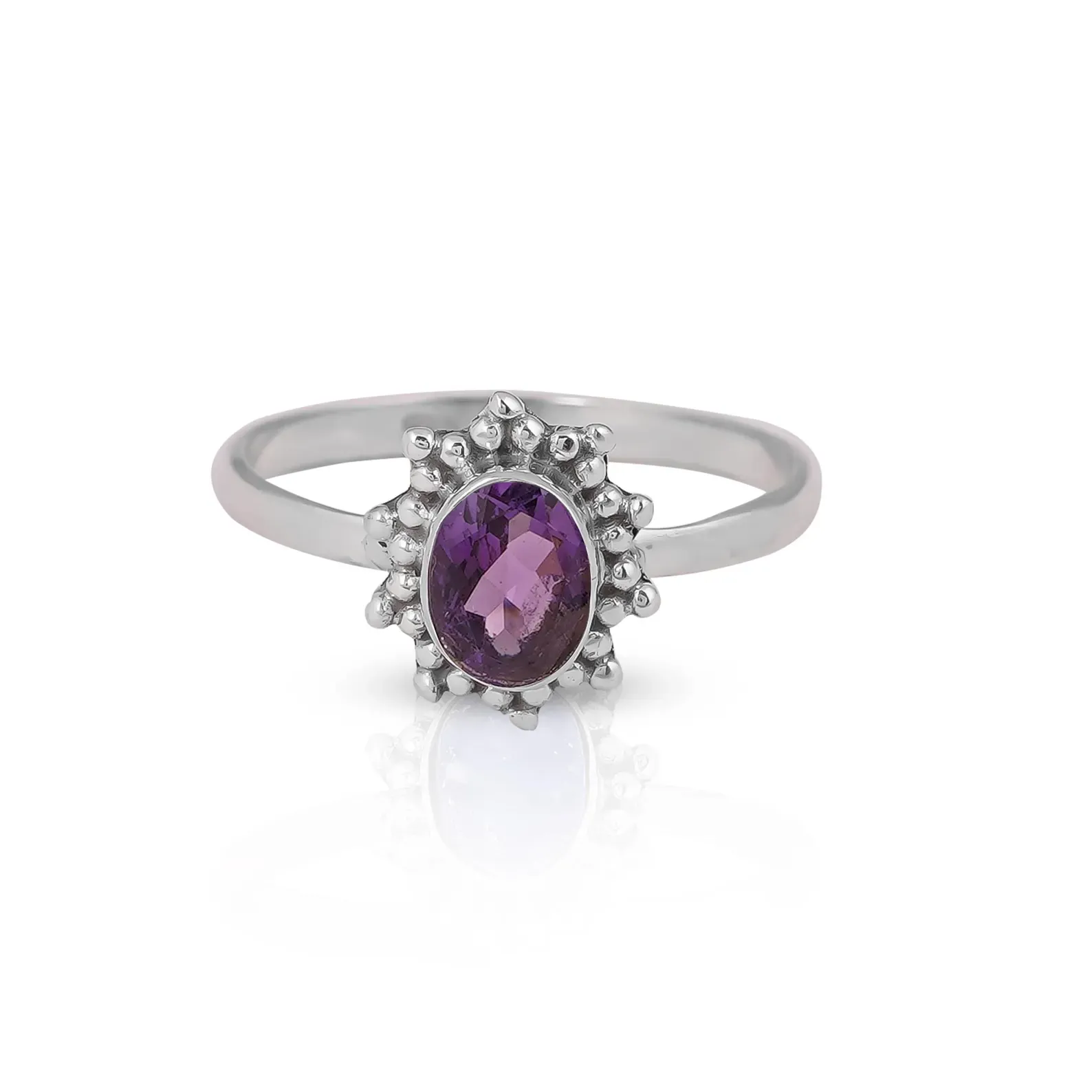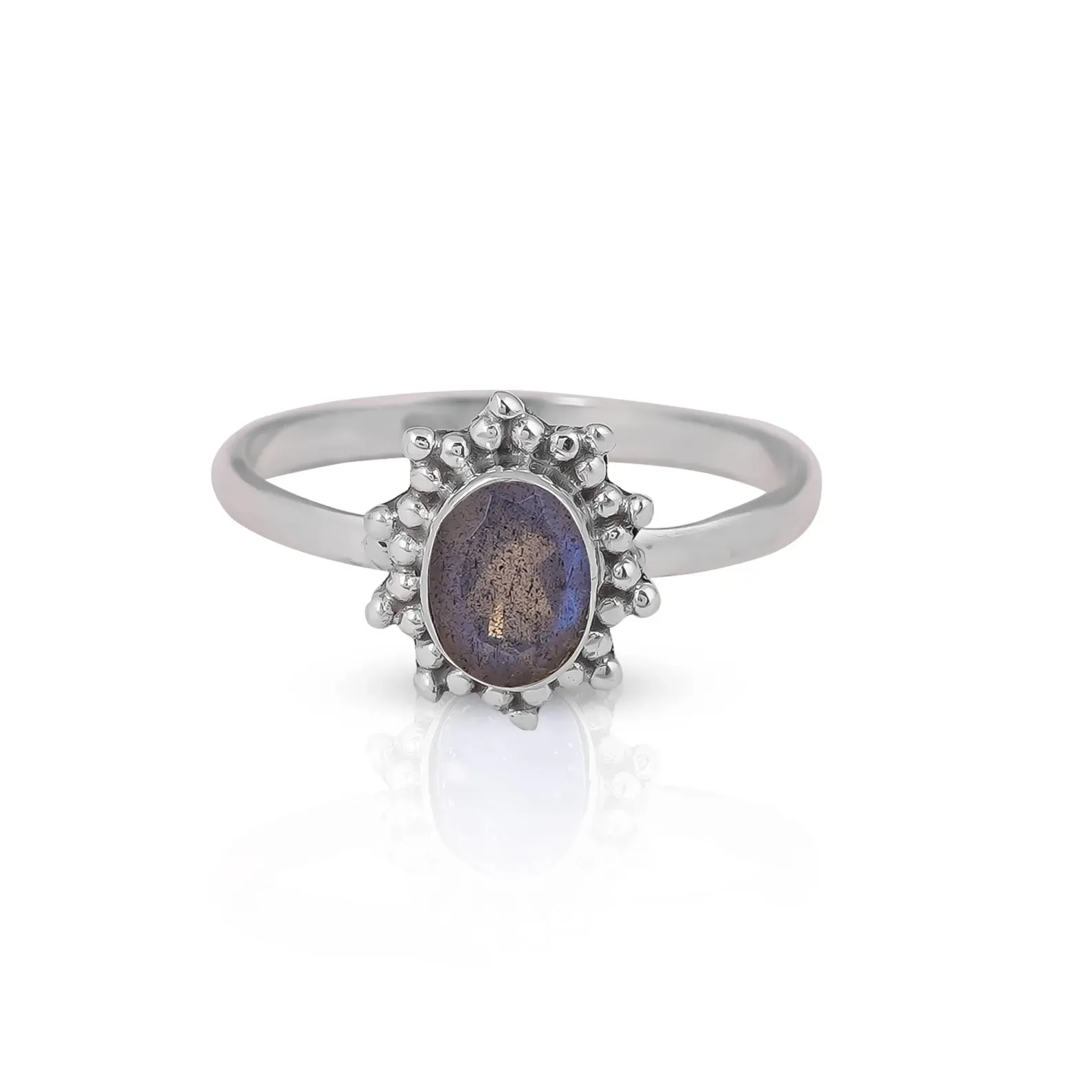 Elevate your jewelry collection with this handcrafted sterling silver ring, featuring a mesmerizing oval-cut blue gemstone—available in your choice of tanzanite or sapphire. Nestled in a secure bezel setting, the gemstone radiates elegance and depth, framed by a delicate halo of hand-placed silver beads that evoke vintage charm with a modern twist.
