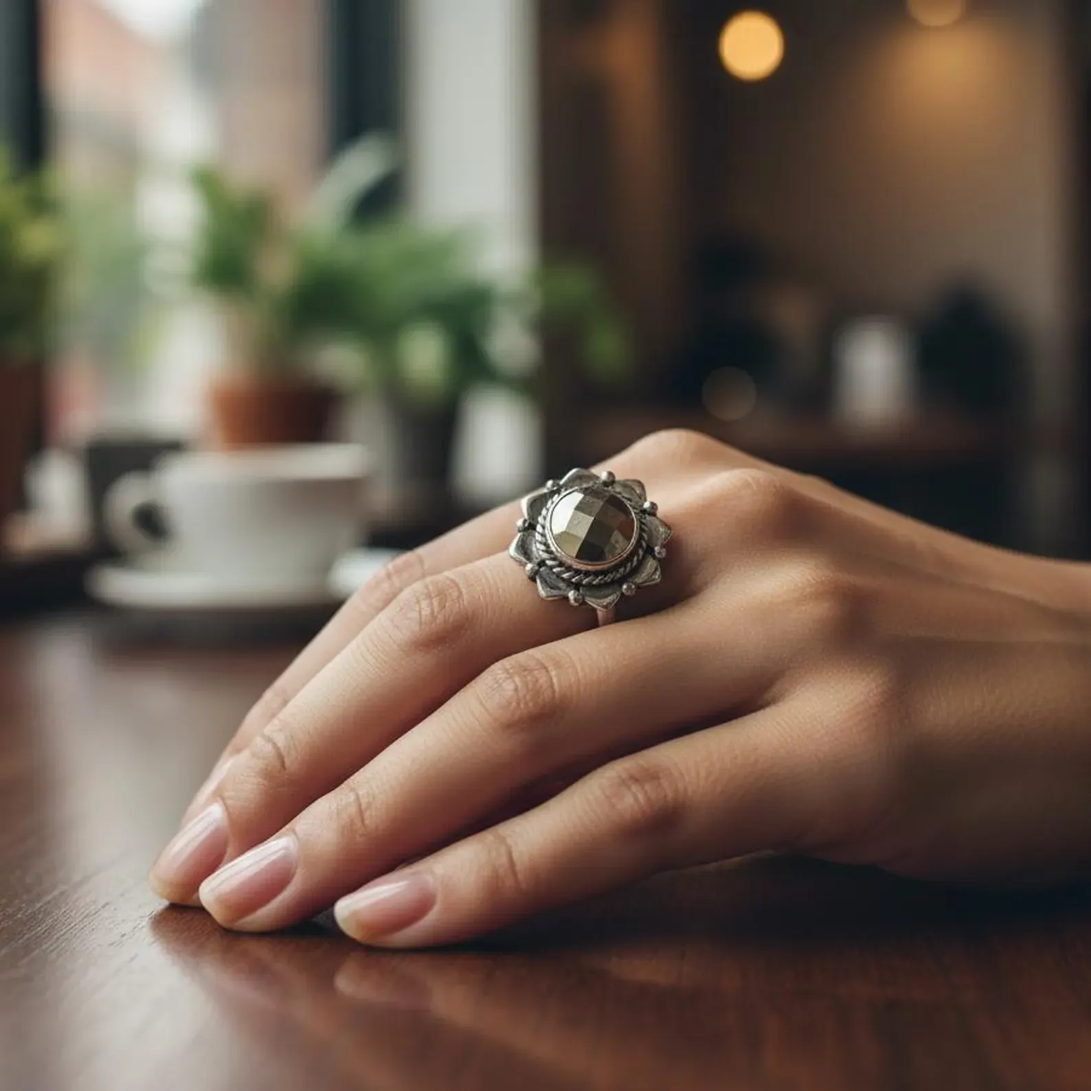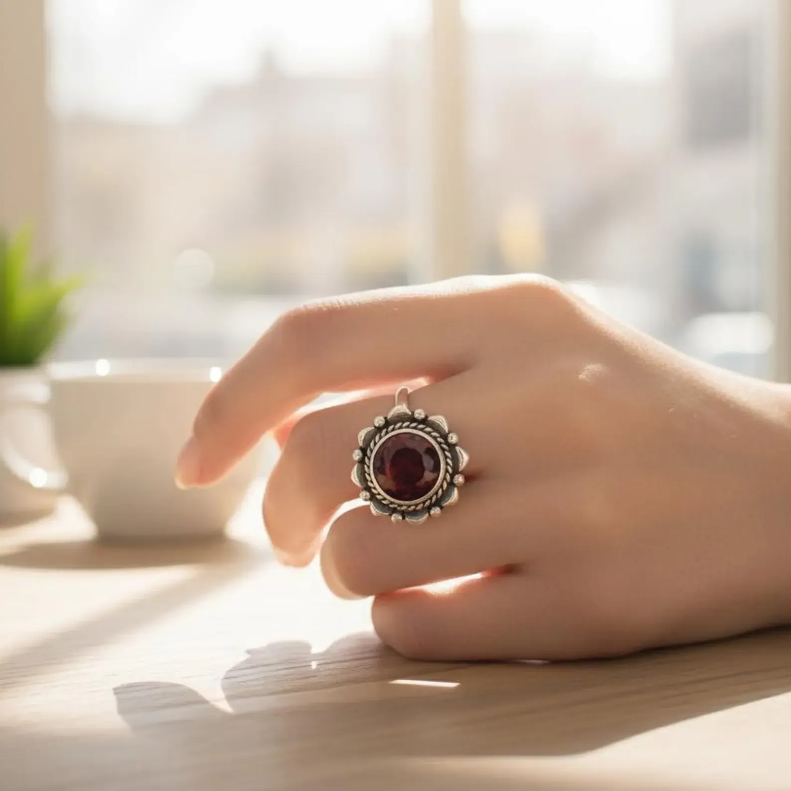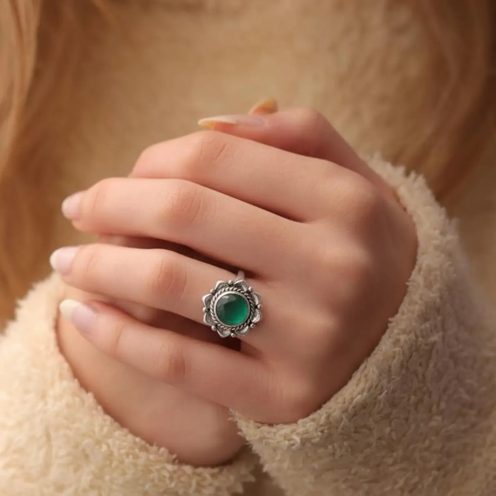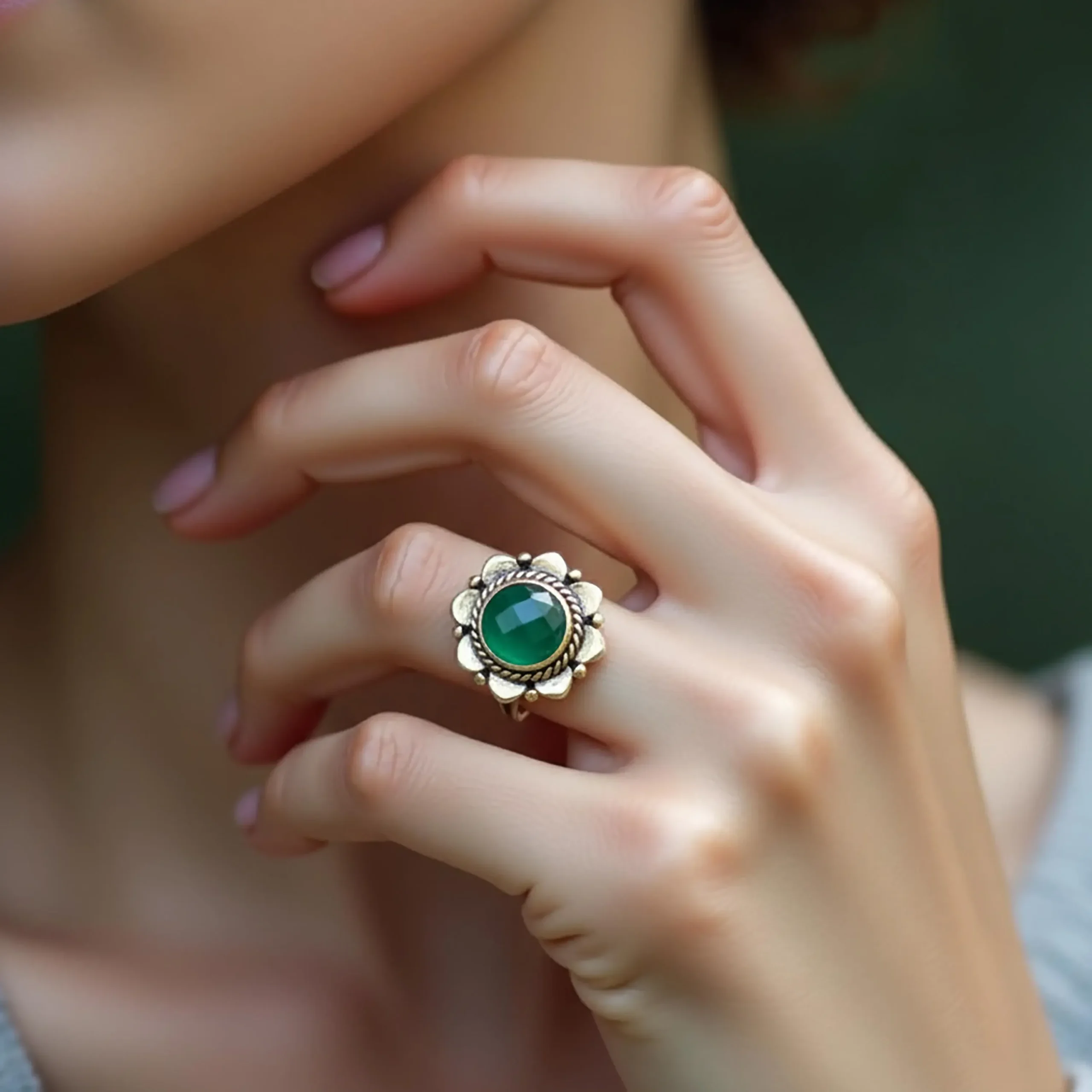 Immerse yourself in the timeless elegance of handcrafted artistry with this sterling silver ring—an ode to heritage, symbolism, and refined detail. Designed in Jaipur, where centuries-old jewelry traditions meet modern sensibilities, this piece is a masterclass in ornamental design and gemstone storytelling.