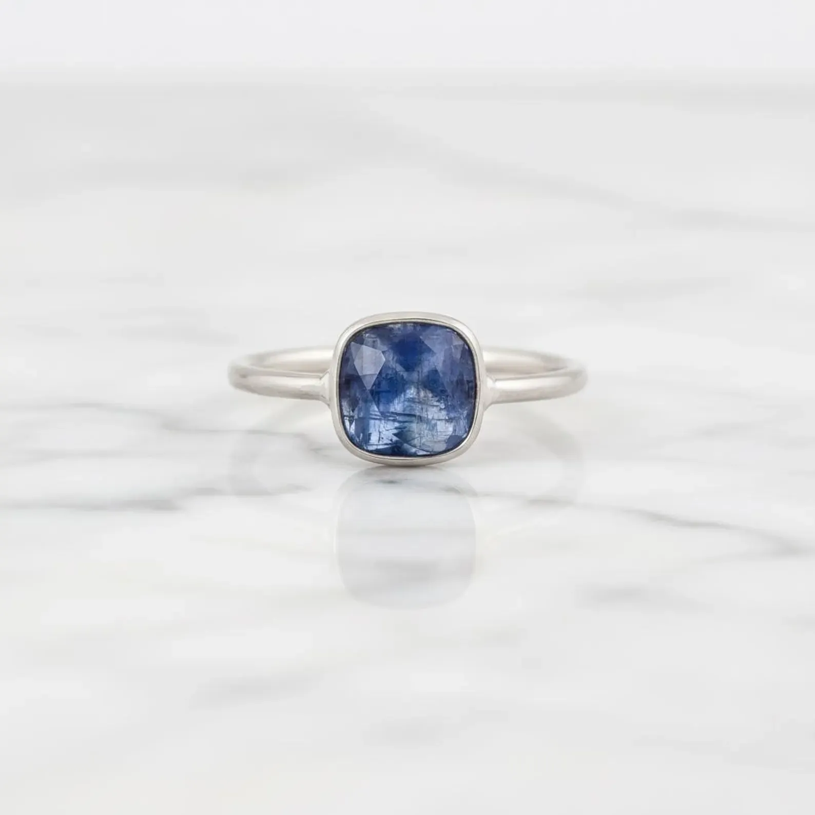 Sterling Silver Gemstone Ring – Cushion-Cut Blue Sapphire for Everyday Elegance Multiple Stone Rings